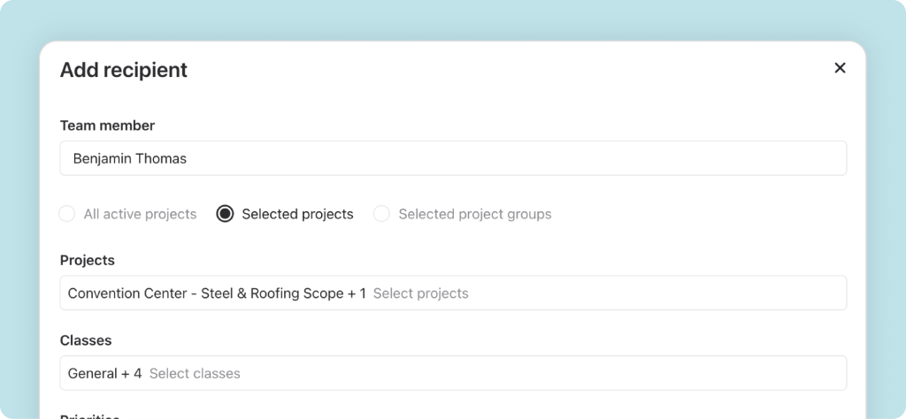 You can now select company-wide recipients to receive notifications for future observations based on default categories such as project, class, and priority level. This helps ensure that the right people get the right information quickly without overburdening anyone. You can access the feature under Company > Observations > Notifications.